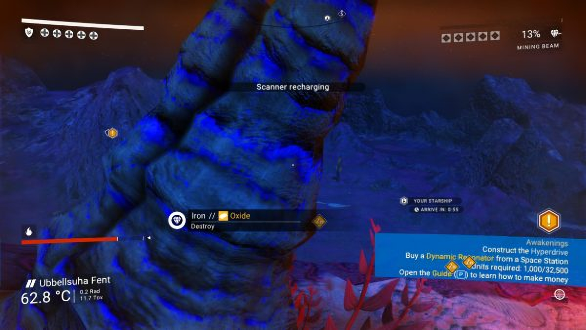 Red bars are health, blue bars are mana, which is common enough across genres that casual players can usually grasp those at a glance, but yellow bars? Green ones? Not uncommon to see on a screen, but alien to many. Even the basic red health and blue mana don’t have easy analogs to explain to folks who don’t play games. A small red splash on the perimeter of an invisible compass set in the middle of the screen is immediately useful for folks in first-person shooter spaces, but not always to others. Those are almost always the only way a game conveys where you’re being shot from, with little other explanation.