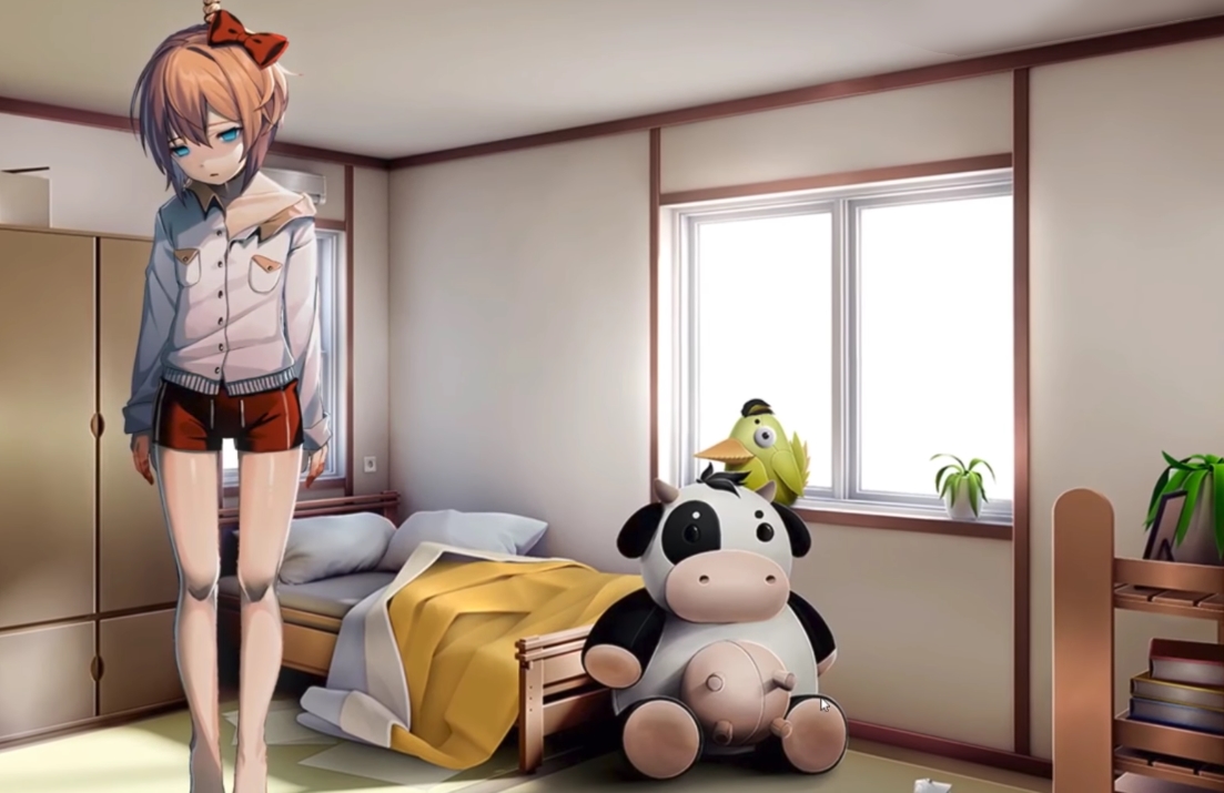 Without even a fraction of hesitation, Doki Doki Literature Club drops the hammer. Bathed in static, breath rushing, heart pounding, the player character enters their lifelong best friend’s room to find her hanging by her neck, lifeless body swaying in the room. The rest of the room, piled over with stuffed bears and the echoes of a young woman’s apparently indulged life, serving as the backdrop to a corpse. Her neck is red and raw with the friction of the rope. Her fingertips stained with the strain of regret. The noose did not break her neck, she choked, furious energy squeezing the air from her lungs, until a corpse took the place of her life.